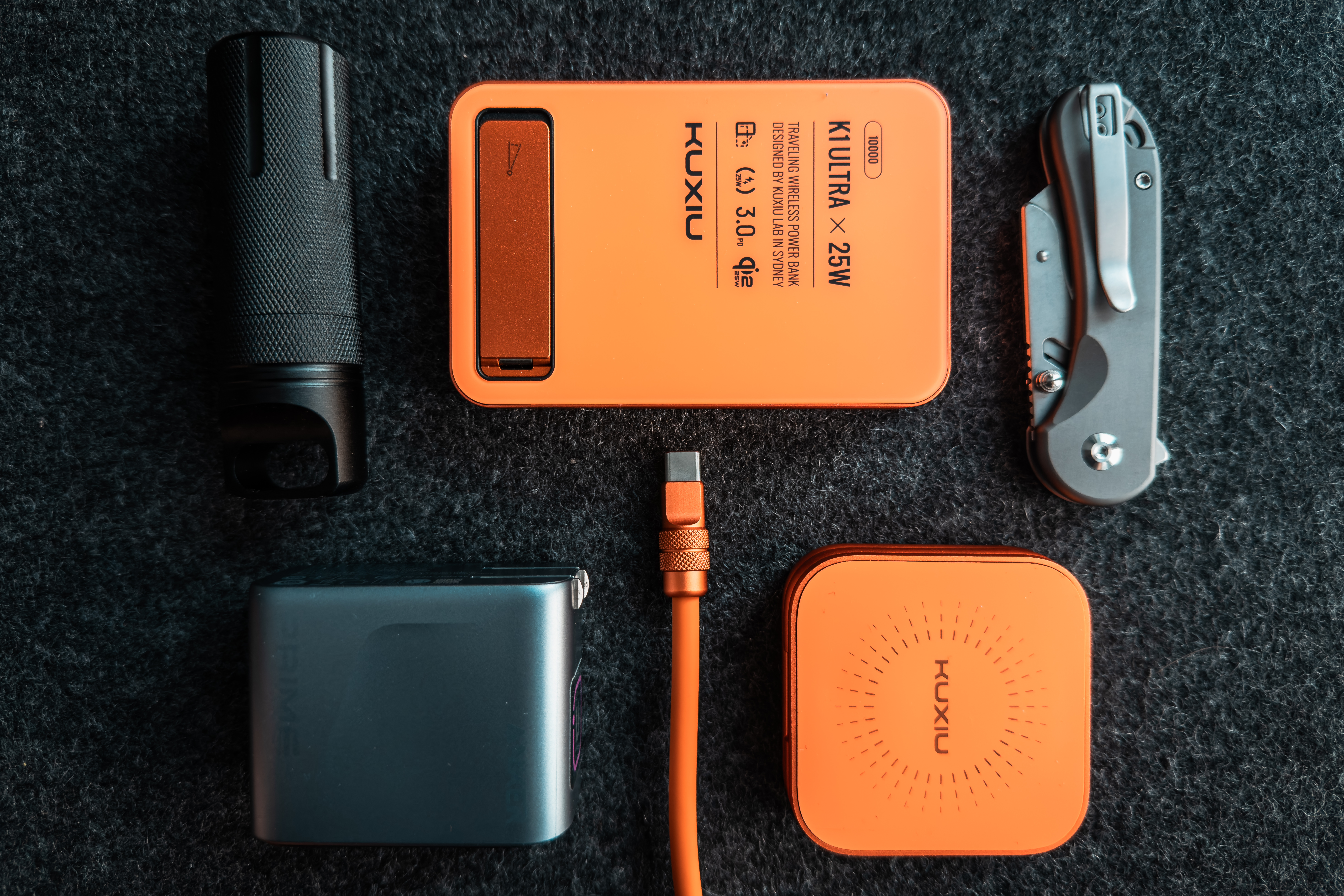 I wasn't originally going to be upgrading my setup, but there were two major events that forced my hand: first, my son needed to upgrade his charging setup, and there was zero chance I was buying him new things; and second, and probably most importantly, there was finally color in the iPhone Pro lineup – Cosmic Orange. When the Ultra was first released, I immediately wanted it for the design and the orange accents/bands. So when I heard that an orange hue might be coming to the Pro, I knew I'd be getting it if that were true. And I couldn't hit buy fast enough. It wasn't long after the announcement that other manufacturers started creating their own Cosmic Orange items to make it all match. The first two companies that I saw to do this were KUXIU and ChubbyCable, which are at the core of my setup. Who knew a color could lead to so much change…