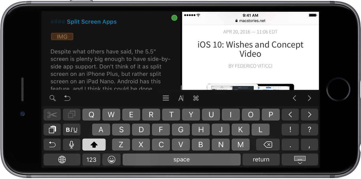There are so many times that I want to have two things side-by-side just to review them. If I’m reading a book, which I do almost exclusively on my iPhone, if I ever want to take notes on a book, I have to either use the 3D Touch gesture to switch apps, or double press the home button to go back. With the drag-n-drop copy/paste concept shown in the MacStories concept, this would be an awesome productivity addition.