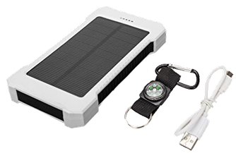 The SOMAN® Portable Solar Panel Charger is a 10000mAh battery dual-USB battery pack with a solar charger option. It is also rain-resistant, dust-proof, and shockproof. It charges via a microUSB cable that comes included. I used it at various times during the trip, and never had to recharge it the entire time.