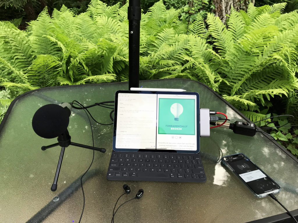 In an effort to head down this road, I ended up switching microphones last year: I had the clutch Blue Yeti microphone, but decided on the Audio-Technica ATR2100-USB instead. Not only was it better for the environment in which I record, but it also afforded me the possibility to record using both the USB and XLR connections, pushing me closer to the goal of iOS-only.